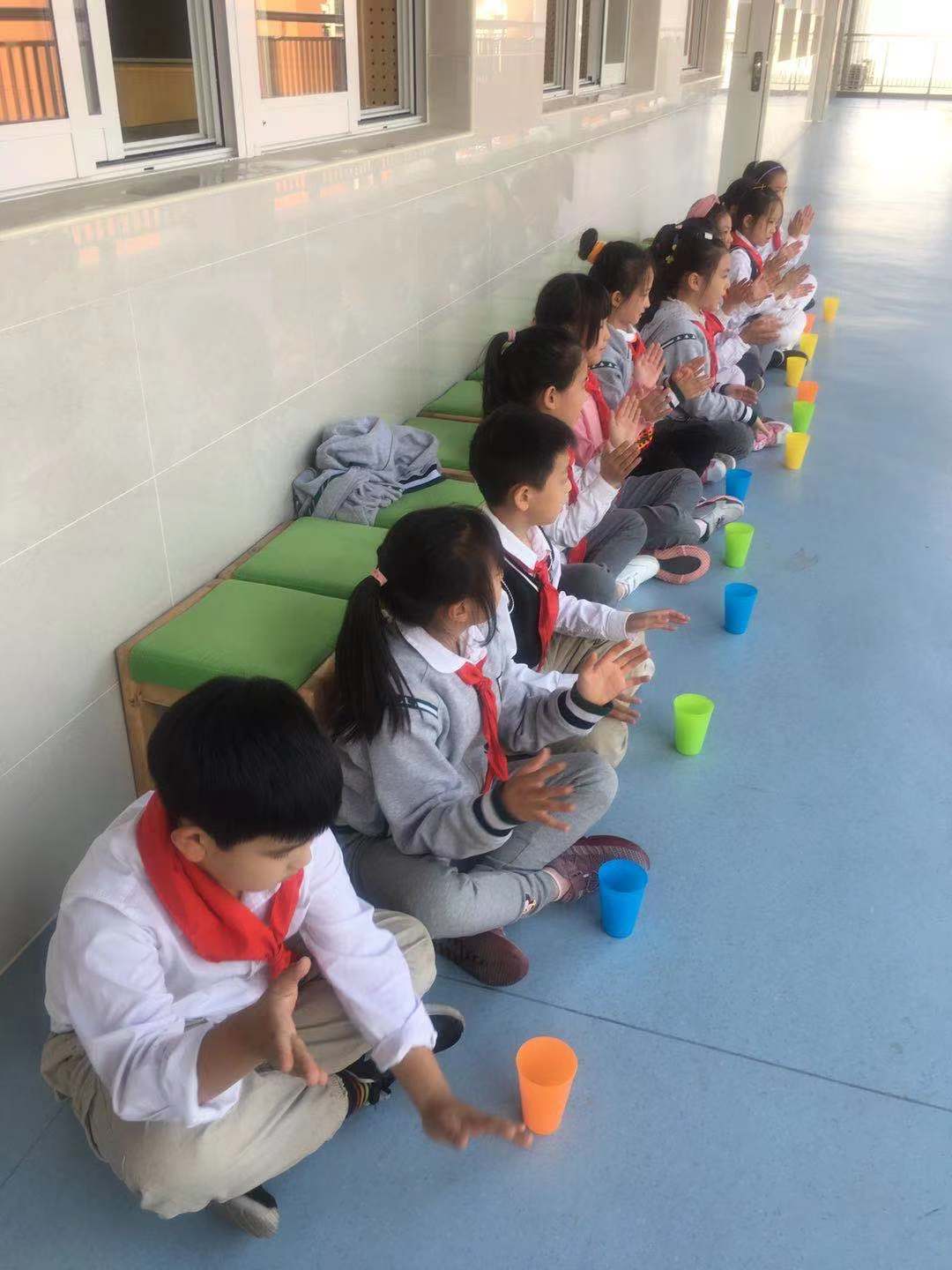 从第一节课的字正腔圆开始抓起,气息是必不可少的练习工作,我们每天课前都是先花十分钟时间进行气息训练,对于普通话的过关更是严格对待,在唱的课堂中先让学生们学会聆听、模唱、气息的结合,加上了塑料杯具的配合,我们的“小白兔”作品渐渐成型,孩子们的节奏感在每天的训练中逐渐成效,从一开始的杯具掉落到最后的和着节奏玩杯具,不断提速,手与口的配合,回家后孩子们更是认真完成每节课的社团作业,课上的表现倍棒,《小白兔》的说唱加动作已经很不错,速度也达到了教学要求,下半学期我们开始练习走台表演!