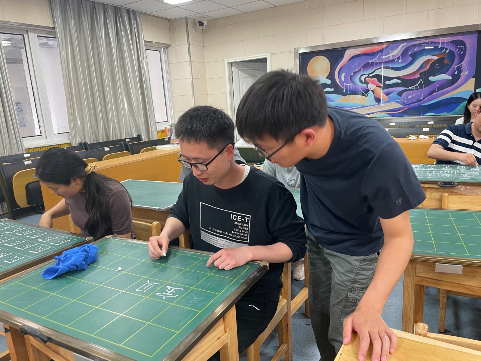孙菡濛老师:曹老师重点指导了粉笔字的点画和勾的写法。她示范时强调“点如坠石”,下笔要轻落重收,还手把手带我们感受手腕发力;讲解“竖勾”时,要求转折处稍顿再自然上挑,避免生硬的直角。练习中我注意到,同样的勾画在“水”字里要圆润,在“刀”字里则需利落。曹老师挨个纠正动作,指出许多平时忽略的细节,比如写点画时粉笔旋转的角度会影响线条粗细。这次学习让我意识到,板书中的每个笔画都藏着学问,扎实的基本功才能让黑板字既工整又有灵气。