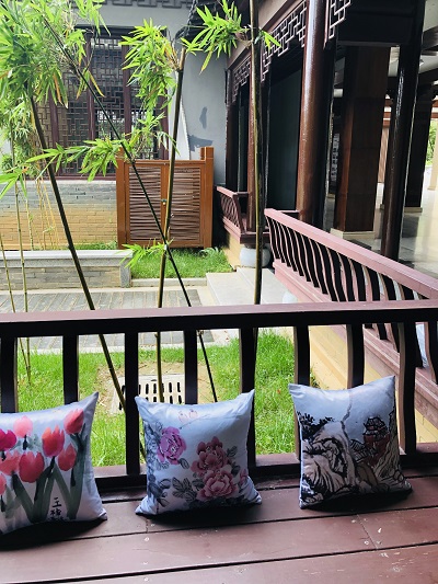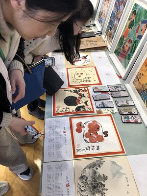 在彰显时代精神的同时,让文化传承,让文明延续,水墨文创作作品中学生创作靠背、抱枕、帆布包,抽纸包,手机壳衣服等涵盖了设计、艺术创作等方面。 内容以校园花草树木为创作题材,有的作品有廖廖几笔,一朵花,几支菊等,充满了生动的情趣,在很多孩子眼中或手中,很快就能画完,学生享受处创作乐趣,也美化校园。装扮生活。