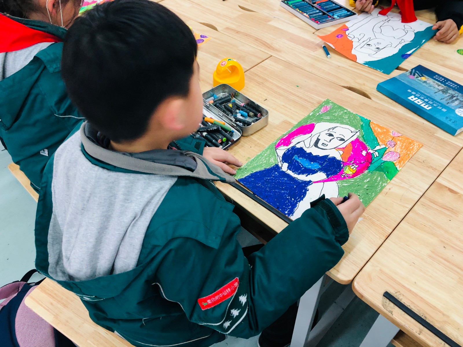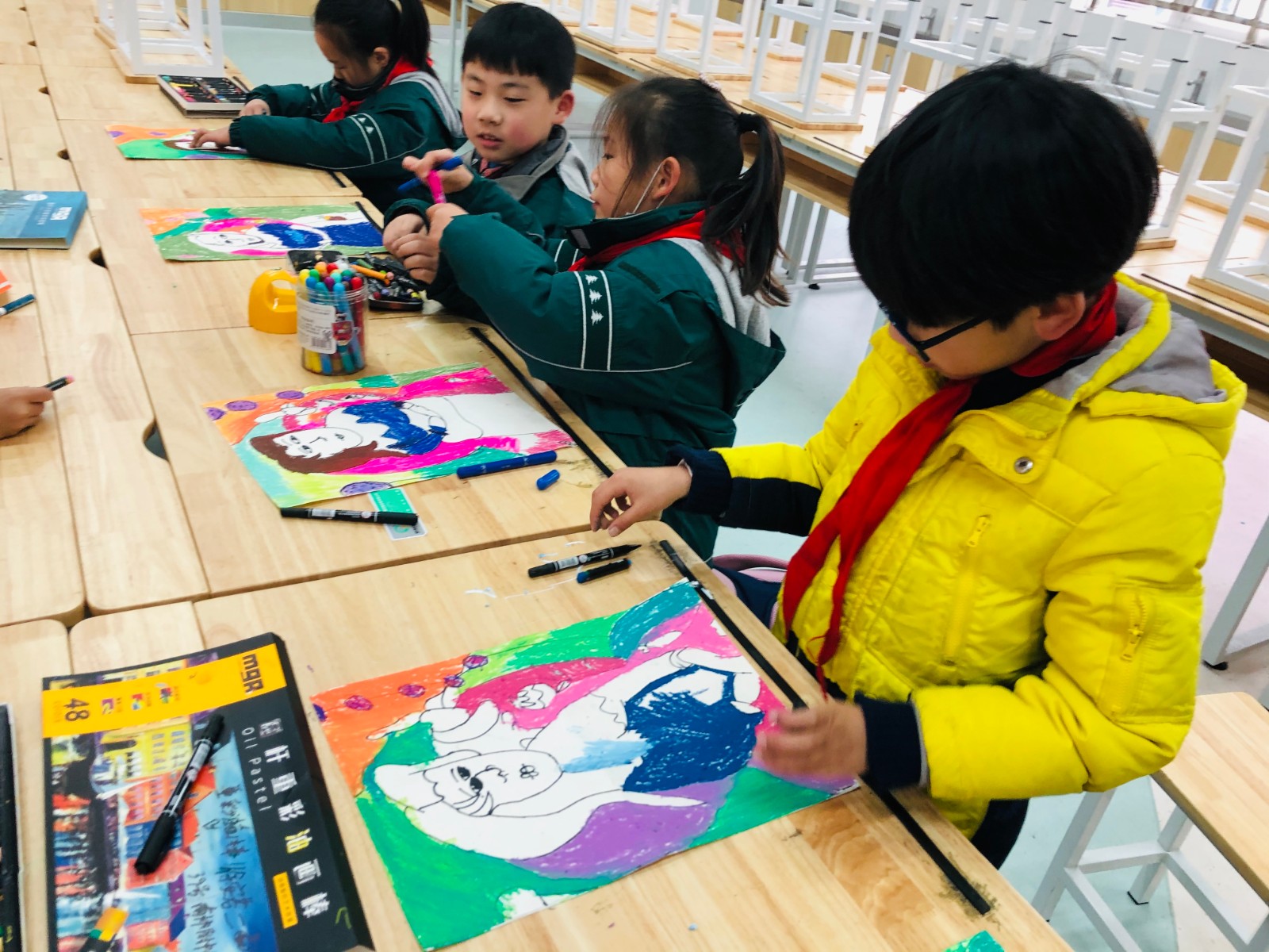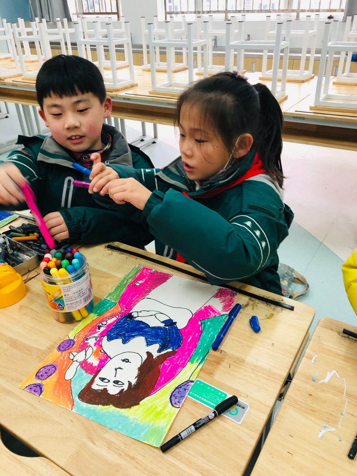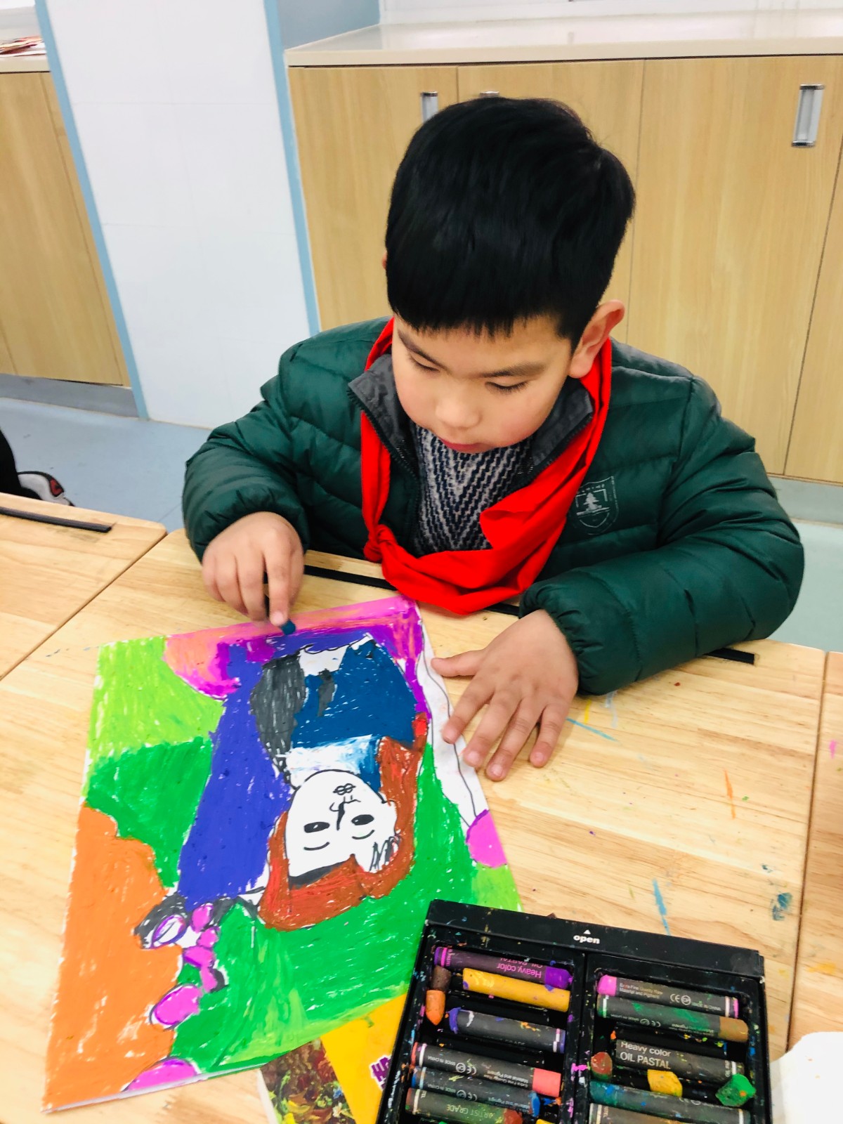 小寒已至,新年不远,南师附中仙林学校小学部二年级向大师致敬社团已经接近尾声,一段时间的学习,孩子们在社团的学习中,较为稳定的向大师致敬,探寻大师的踪迹,社团从开设伊始,孩子们接触重彩油画棒时的懵懂,动手能力弱,经过一段时间的有效学习,孩子们已经可以自如的进行大色块练习,大部分孩子已经可以画出比较好的作品。