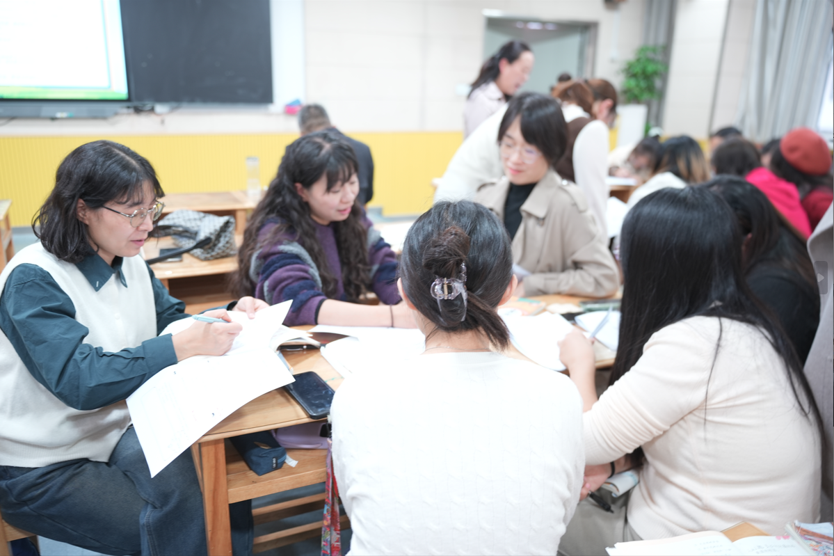 工作室成员沈丹妮老师带来《小学语文课时作业设计的整体构思》主题分享,她立足课标、教材与学情,解析单元教学目标向作业目标的转化路径,展示精读与略读课文的差异化目标分解,实现作业阶梯式进阶;丁晨老师以《小学语文课时作业的设计路径》为题分享,她聚焦基础、拓展、实践三类题型,详解 “选”“创”双路径,并通过学习提示、评价量表等实现分层,兼顾学生差异;工作室成员陆瑶老师分享《小学语文作业设计对标复查与优化实践》,她通过“一一对照全覆盖”“两两比较查进阶”实施对标复查,同时抛出设计中的难点引发全场思考。