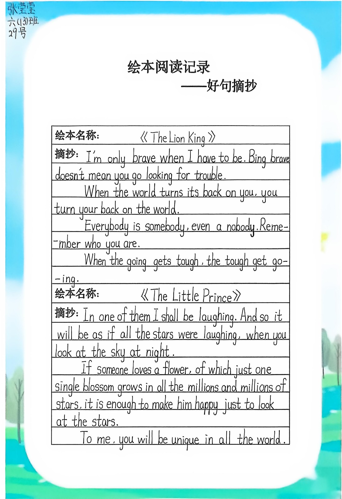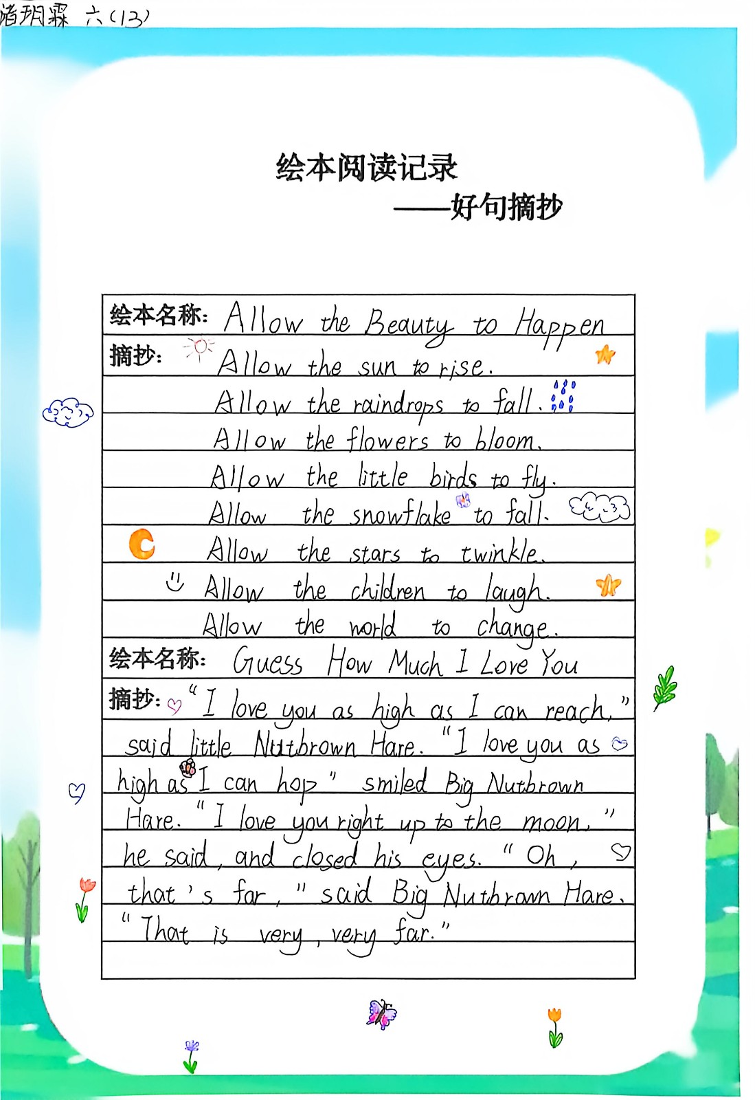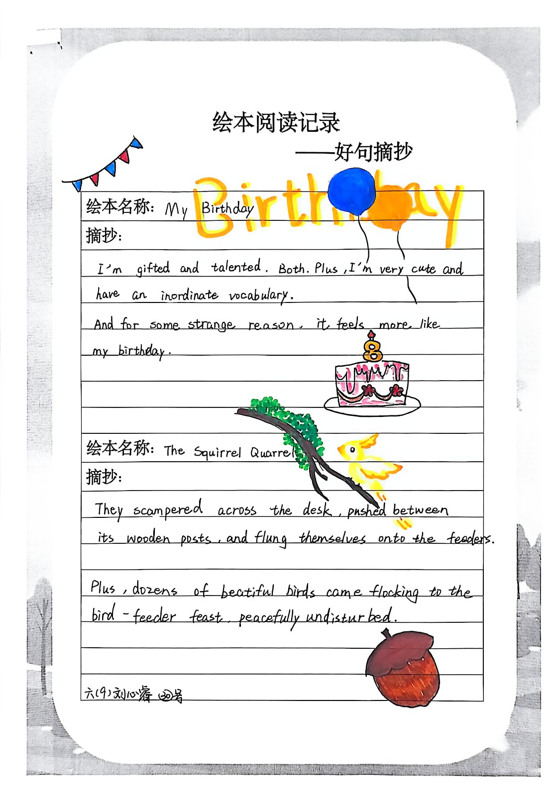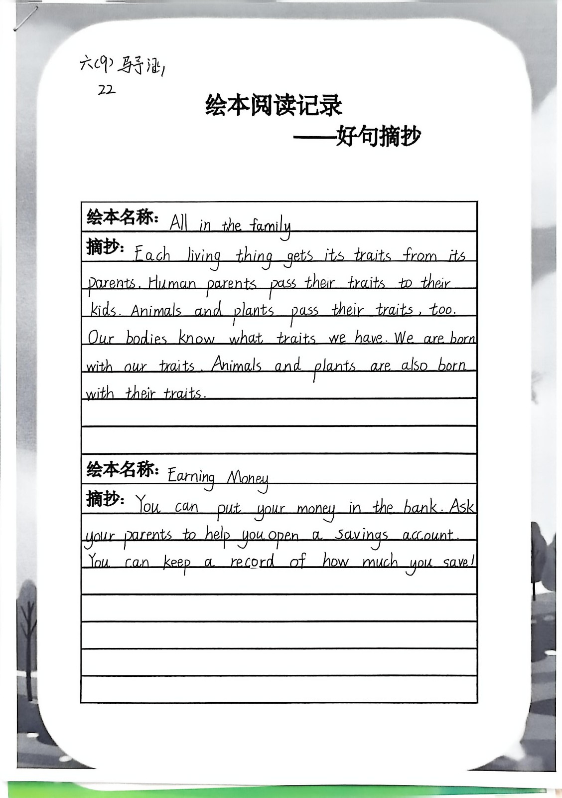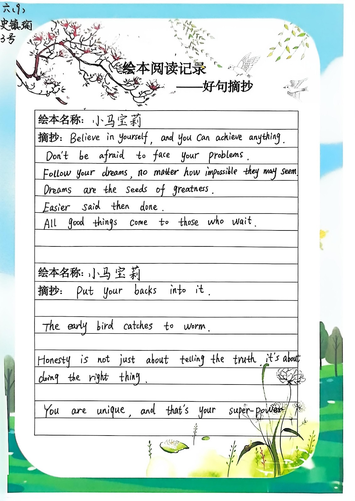 暑假期间,小学六年级的同学们以英语绘本为桥梁,开启了一段充满趣味与收获的语言学习之旅,不少同学还认真进行好词好句摘抄,为英语素养提升添砖加瓦。