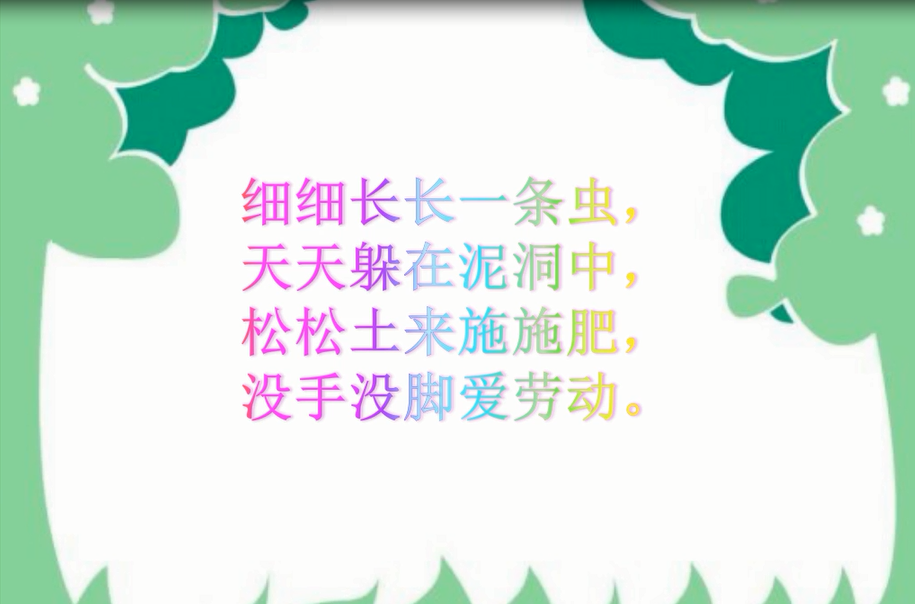 第一节课,申姗姗老师执教的是绘本《蚯蚓的日记》。这一绘本以独特的视角(一条蚯蚓)出发看世界,用日记的方式记录了学校、家庭、朋友之间的生活,诙谐有趣,同时还向孩子们传达了有关生物和地球的知识。申老师由环衬出发,展示小蚯蚓丰富多彩的世界,激发孩子阅读兴趣。再以三篇具有代表性的日记作为抓手,引导孩子们学会观察图片里的表情、动作、语言,并能反之运用这些要素加以想象,表达出更精彩、更个性的想法。
