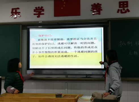 为了预防校园欺凌事件的发生,提高全体学生的法律意识、安全意识和自我防范保护能力,积极营造平安和谐有序的校园环境。11月27日下午,附中仙小四年级级部开展了以“预防校园欺凌,共建和谐校园”为主题的班会活动。