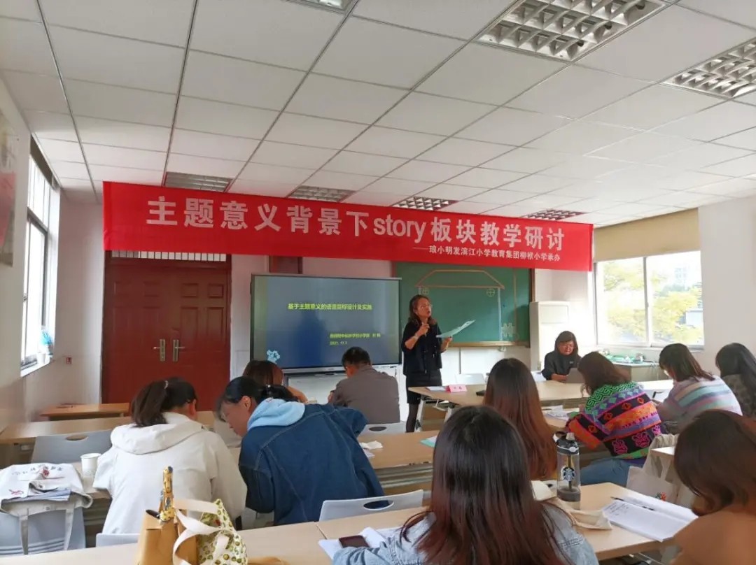 为有效促进教学质量、充分发挥成长课堂特色、提高集团校教师教学水平,琅小明发教育集团于2021年11月3日上午,在江北新区柳袱小学举行了主题意义背景下Story板块教学研讨活动。叶畅名师工作室主持人叶畅老师受邀参加此次活动,评课并作了专题讲座。柳袱小学校长王强、校长助理黄云明也全程参与了本次活动。