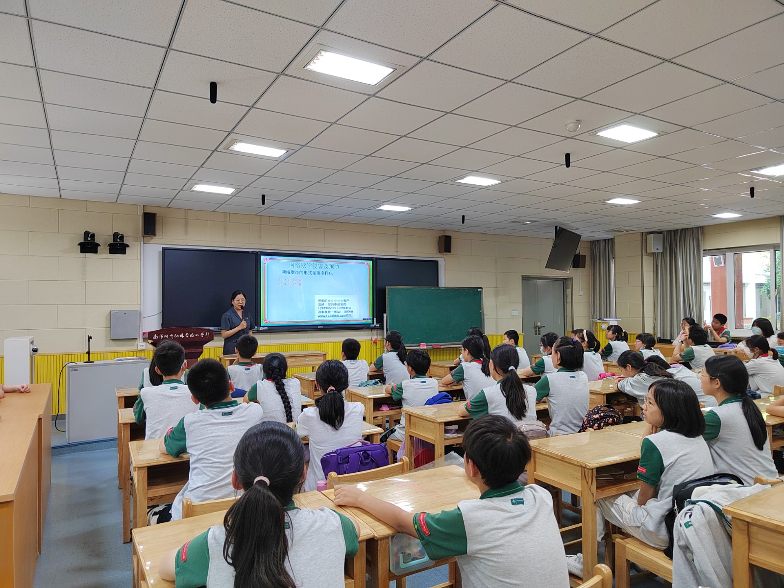 为关爱未成年人成长,加强未成年人法治观念,营造健康和谐的校园环境,2023年6月14日下午,栖霞区人民法院虞法官走进附中仙小,为学校六年级学生带来了一场以“网络安全教育”为主题的法治专题讲座。