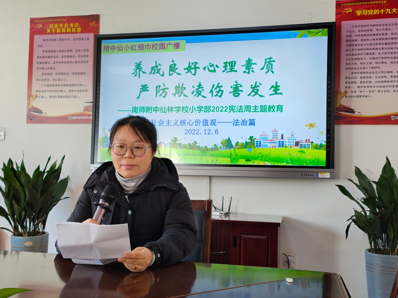 南师附中仙林学校小学部长期以来高度重视校园法治教育,每年均将法治教育纳入学校重点活动规划内容之中,高质量开展。2022年宪法周期间,学校以“防欺凌”为本次活动主题,以未成年人保护法法律法规为主要宣传内容,将法治教育与防欺凌教育相融合,推进学校法治教育工作深入开展。