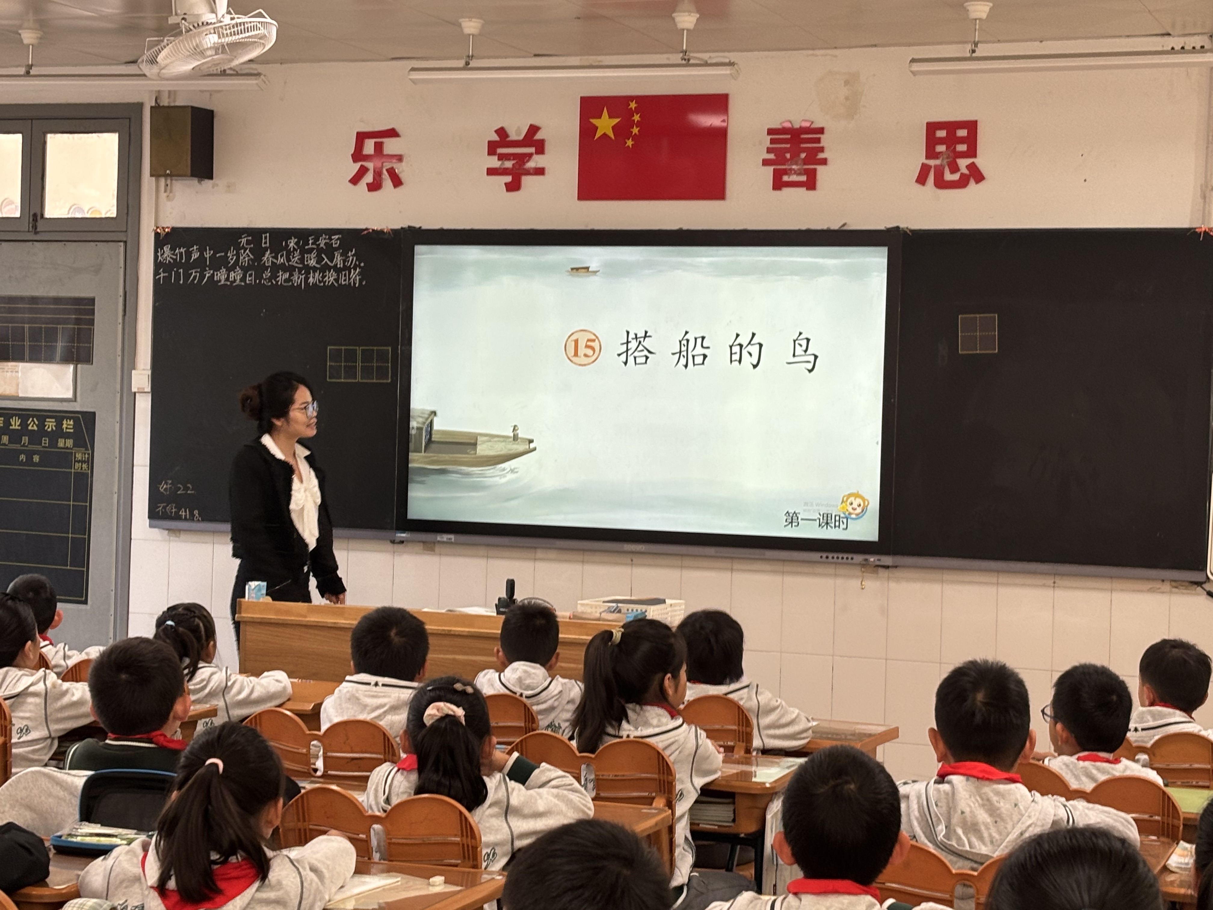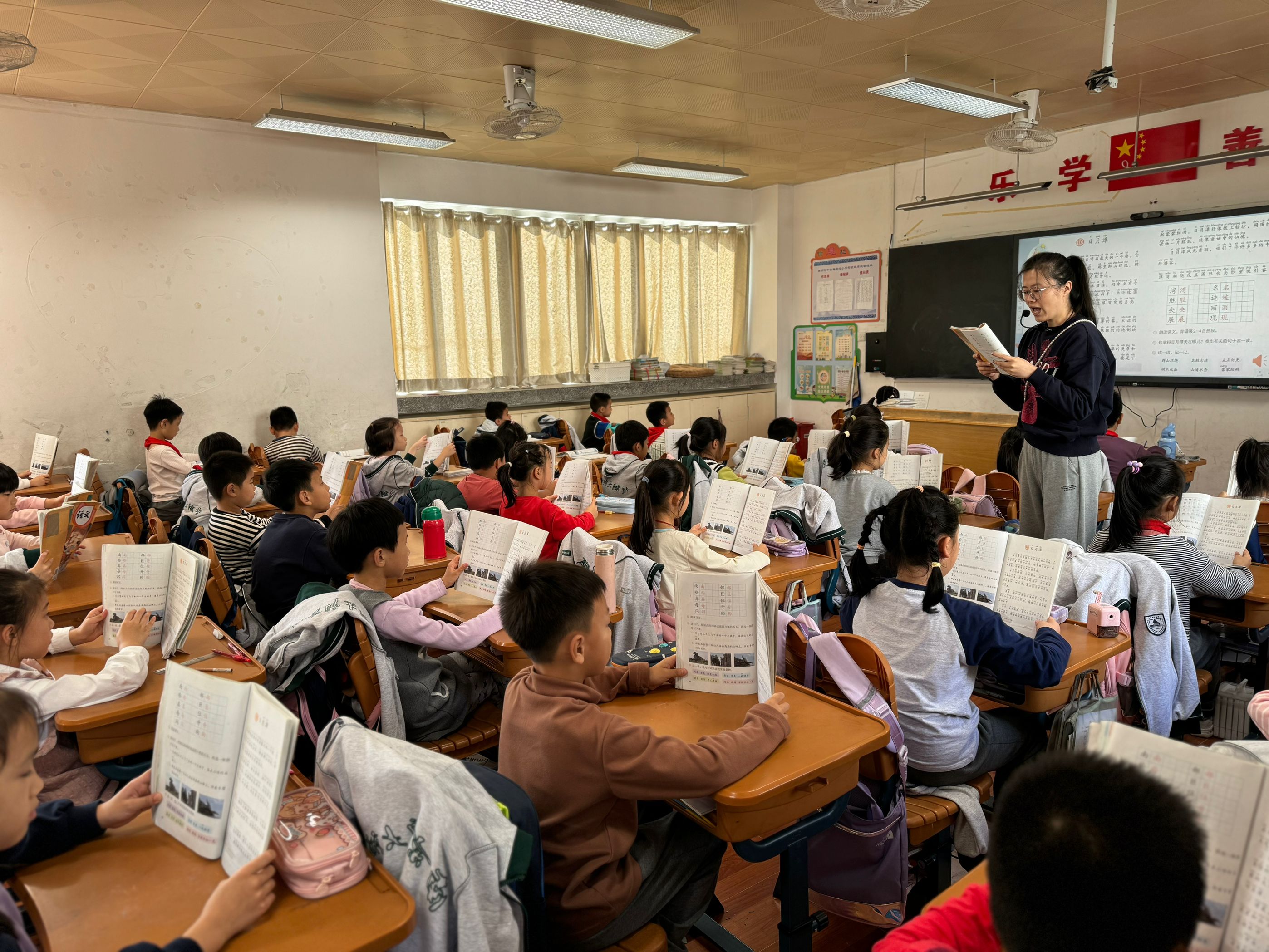 二年级组语文老师齐聚二(15)班,进行组内教研活动。殷嘉老师执教二上第四单元《日月潭》,殷嘉老师尊重学生的读书体验,注重情感的生成。力求把教师的引导,学生的读书与形象的图片有机结合起来,从而让学生去想象日月潭的美,并在感受美的过程中积累词语,运用词语。