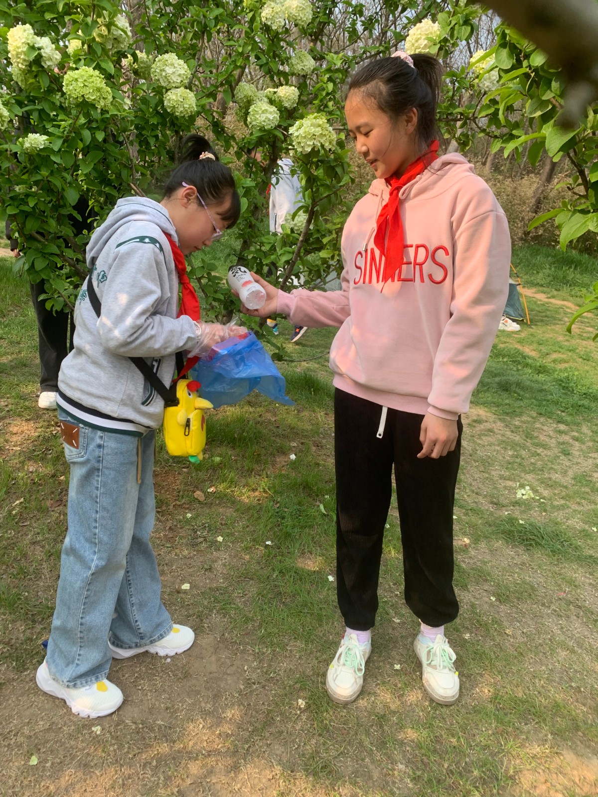 周六下午2点,春日融融,柳丝轻扬,五(1)中队的小小志愿者们经过商议,为了能在后续系列活动中更好、更熟练的在江边开展环保活动,也为了提前锻炼自己的各项实践操作,他们本次选择羊山湖公园作为实践地点。