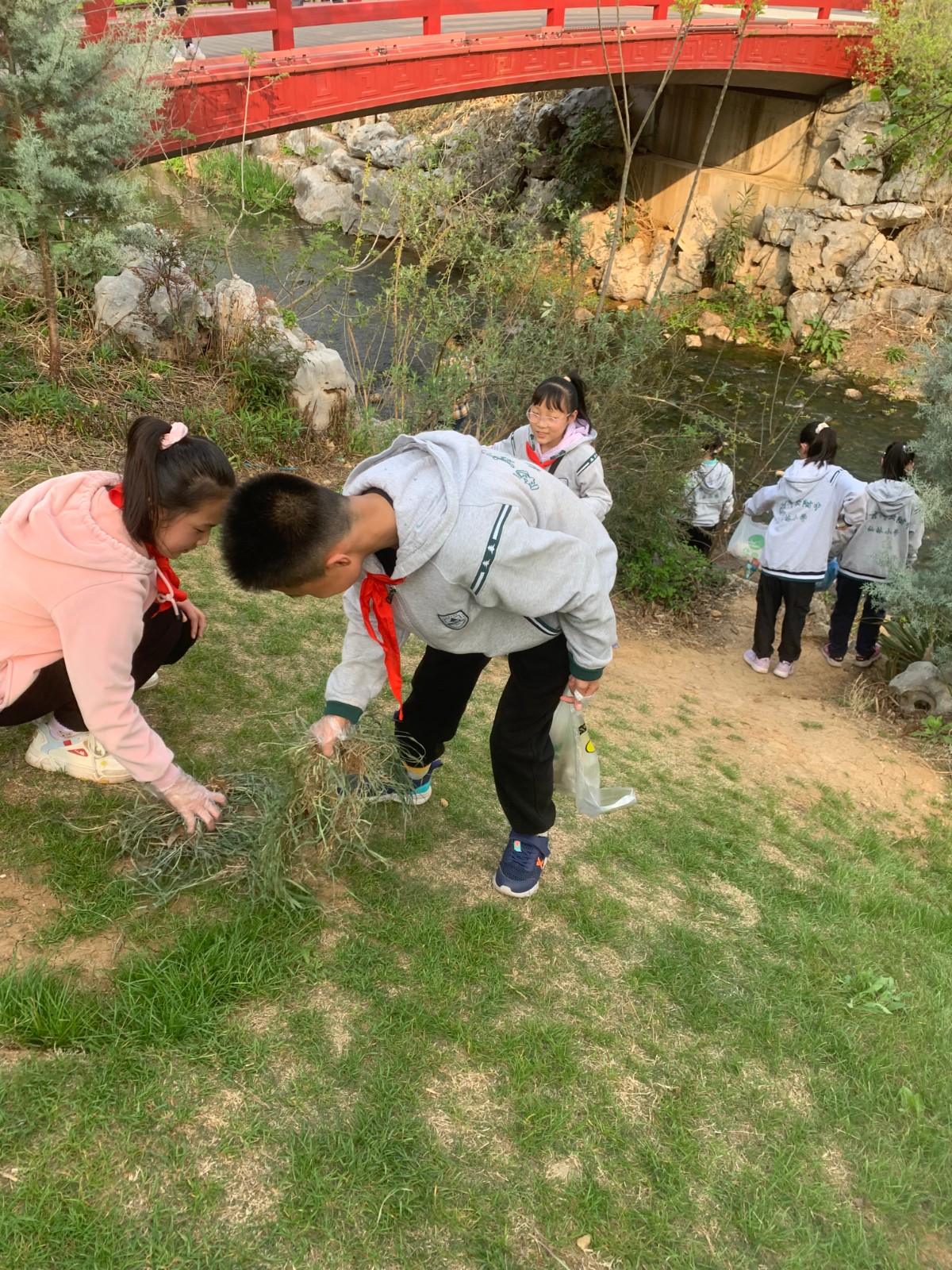 羊山湖公园的临水环境和长江边很类似。环境活动开始后,同学们各司其职,不怕苦,不怕累。有的负责撑袋子,有的负责捡垃圾,大家低着头、弯着腰,细心捡拾着果皮、小纸⽚、塑料瓶等垃圾杂物。