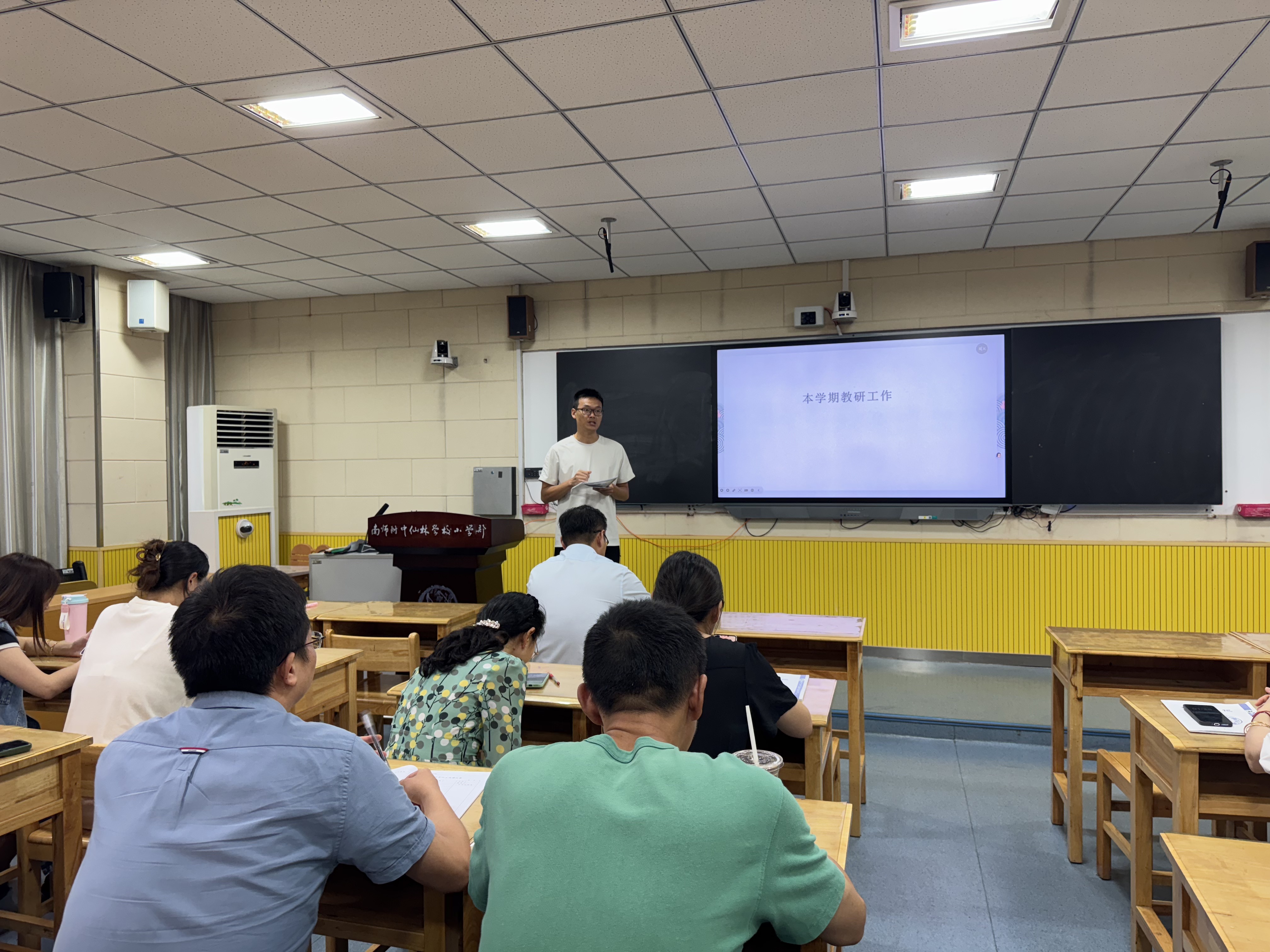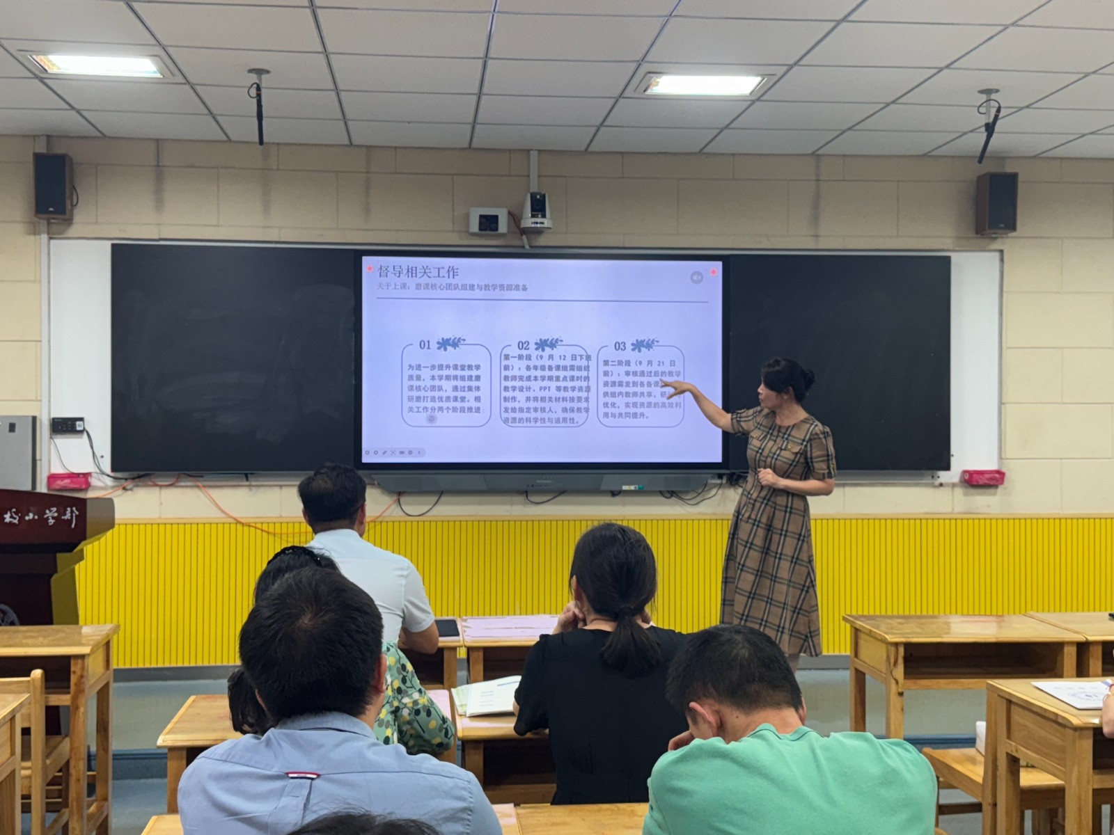 随后,教研组长嵇磊传达了区教师发展中心的工作指示,并对本学期的教研工作进行了详细部署;王辉主任公布了暑期教学设计评选结果;张长梅主任对教案和作业提出了进一步要求,明确了各年级创新作业的主题,并强调需补齐数学阅读方面的短板。