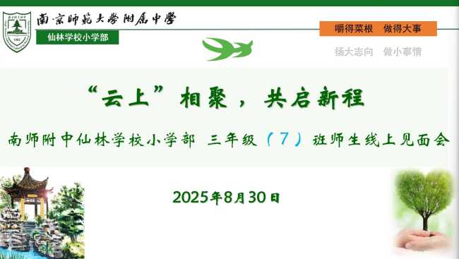 盛夏的蝉鸣渐歇,初秋的清风携来新的期待。当暑假的惬意时光画上圆满句号,新学期的序曲已然奏响。为搭建家校沟通的坚实桥梁,帮助家长清晰了解新学期各项安排,助力孩子们以最佳状态迎接校园生活。8月30日,南师附中仙林学校小学部各班级如期召开《“云上”相聚,共启新程》为主题的线上家长会。一场跨越屏幕的暖心交流,为新学期的家校共育拉开了序幕。