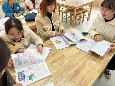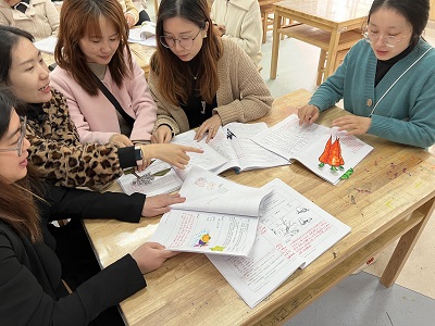 之后由祝青、曹梦娜量为骨干教师进行点评,二位教师充分肯定周老师的课。将传统文化融入课堂,不仅提升了学生对传统文化的认知,同时培养了学生的文化自信。最后组内其他老师也相互讨论,看如何将篆课教学更好地如如自己的课程并实施。