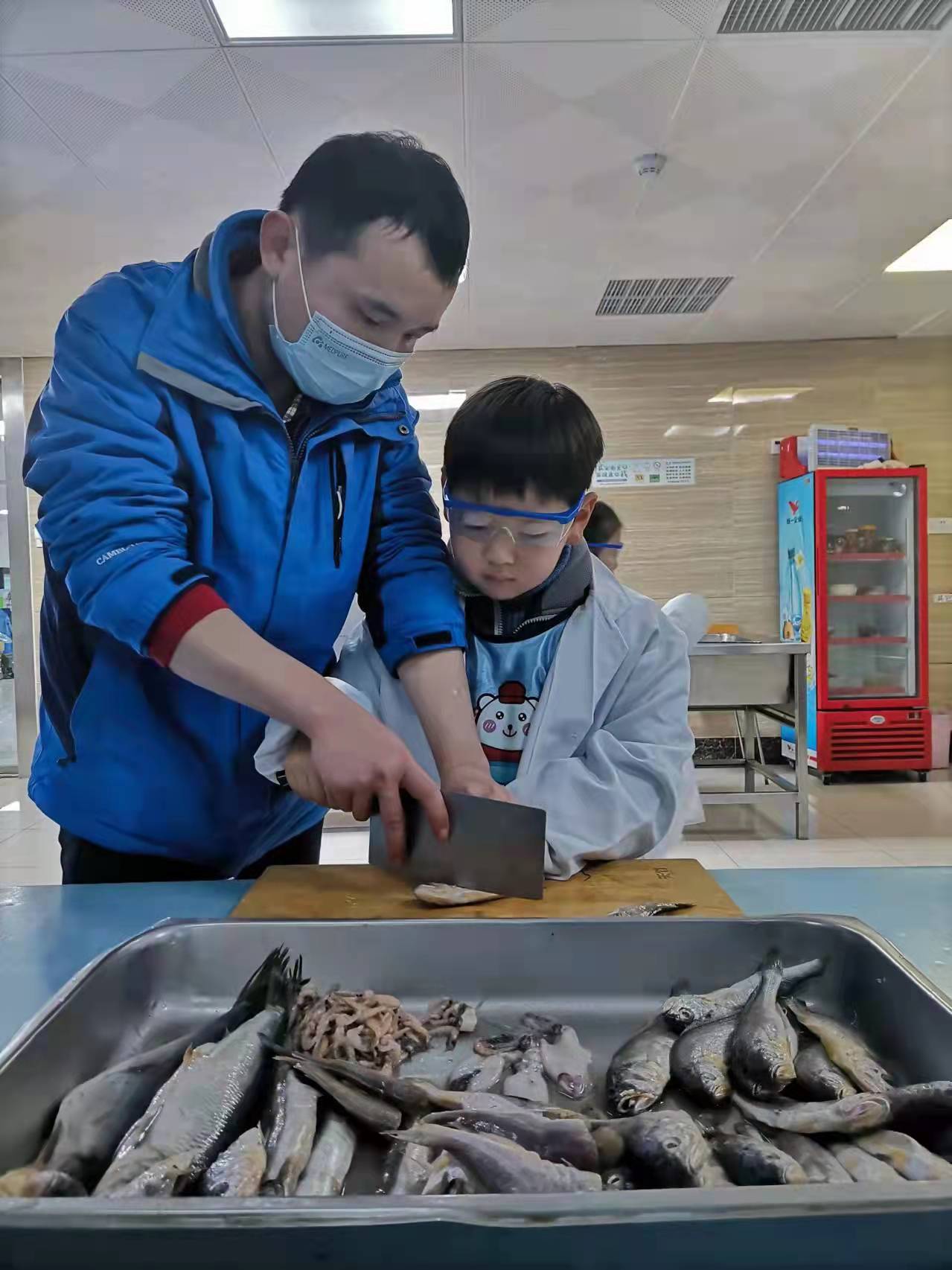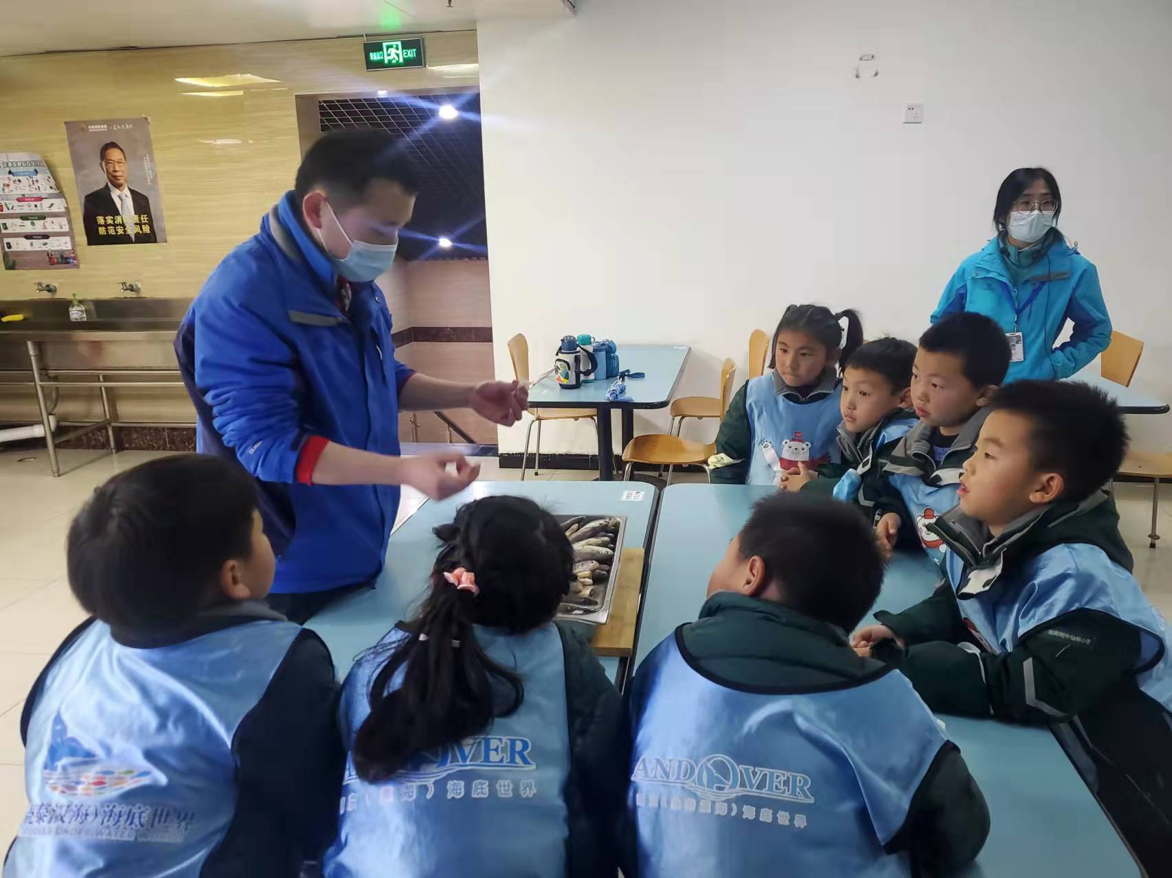 中午过后,同学们跟企鹅饲养员叔叔一起用黄鱼制作企鹅午餐,随后来到企鹅馆给企鹅喂食,并且近距离观察企鹅宝宝、写下观察日记。