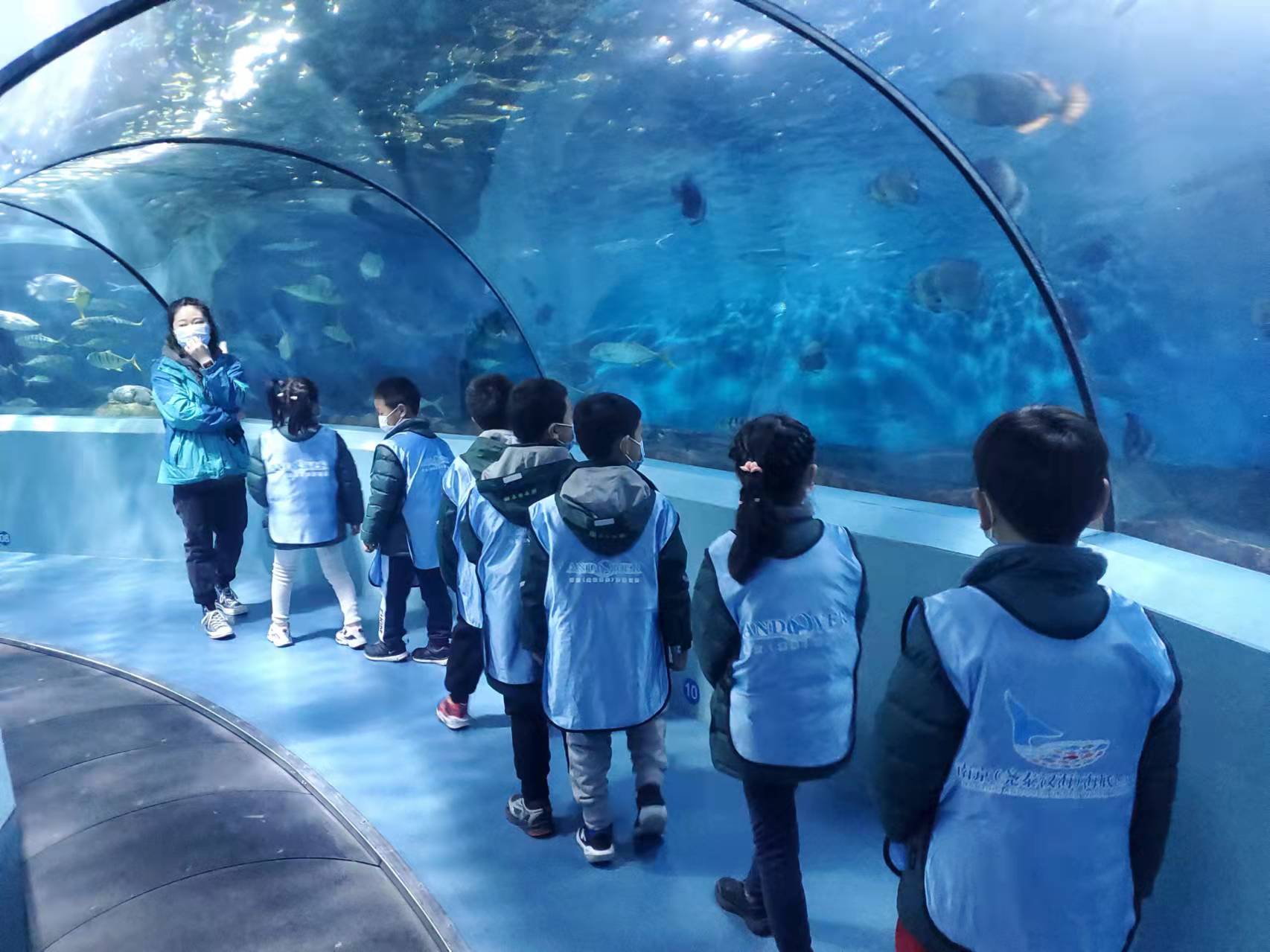 2022年2月26日,南师附中仙林学校小学部一年级七班红领巾小队的准少先队员们参加了由科学组长蒋洁老师带领的海底世界海洋探索之旅。早上8点30分,同学们在学校集合乘车前往海底世界。 。
