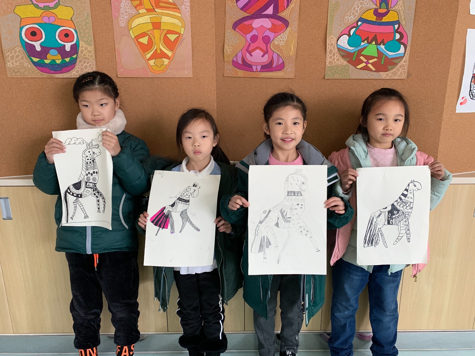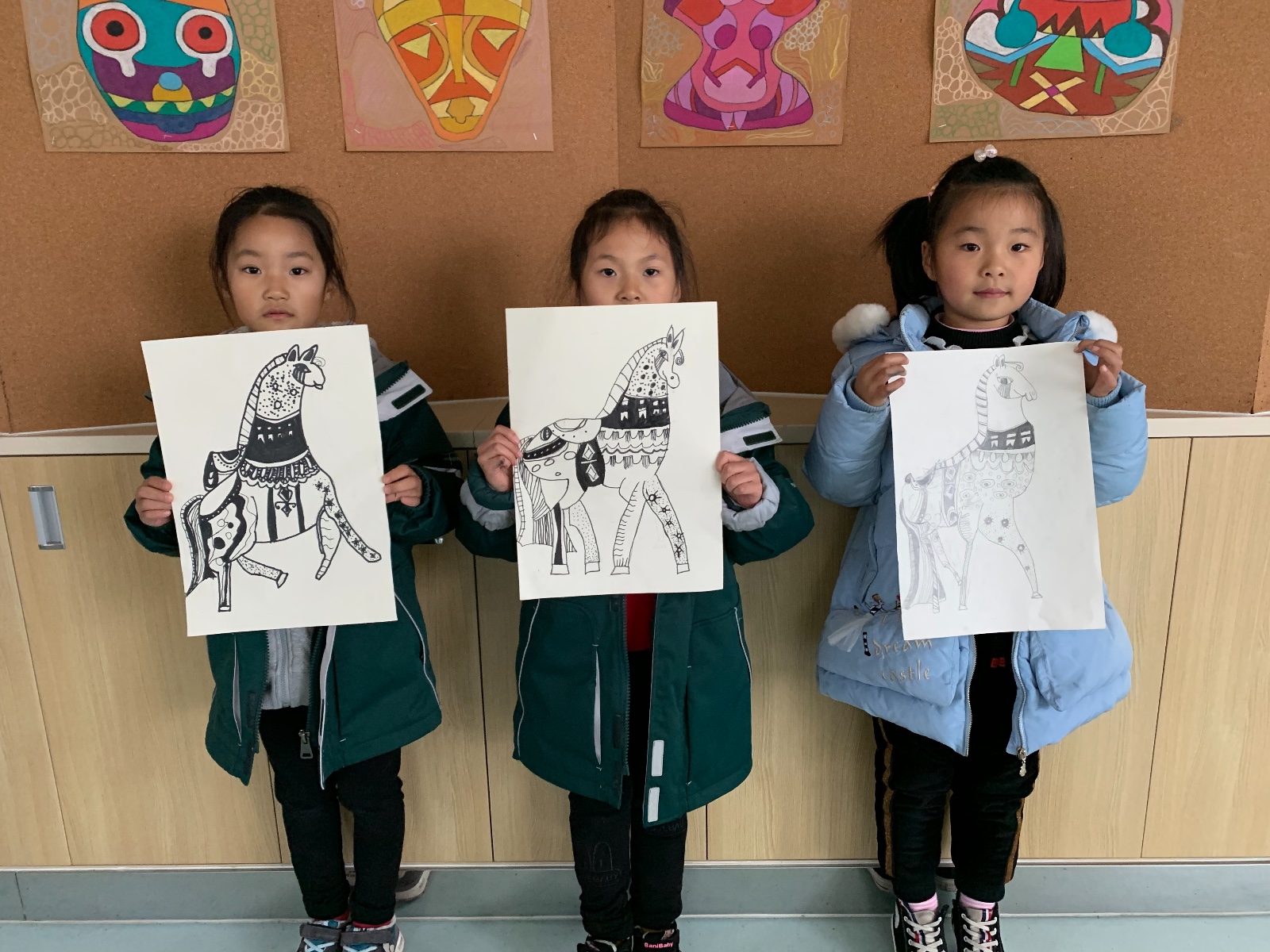 夏天时,一双双童稚的小手在捕捉跳动的线条,一转眼来到了冬日,大笔一挥,画出的是自信与快乐。学期即将结束,相信在艺术这方热土上,能绽开出更多小小的美术之花。