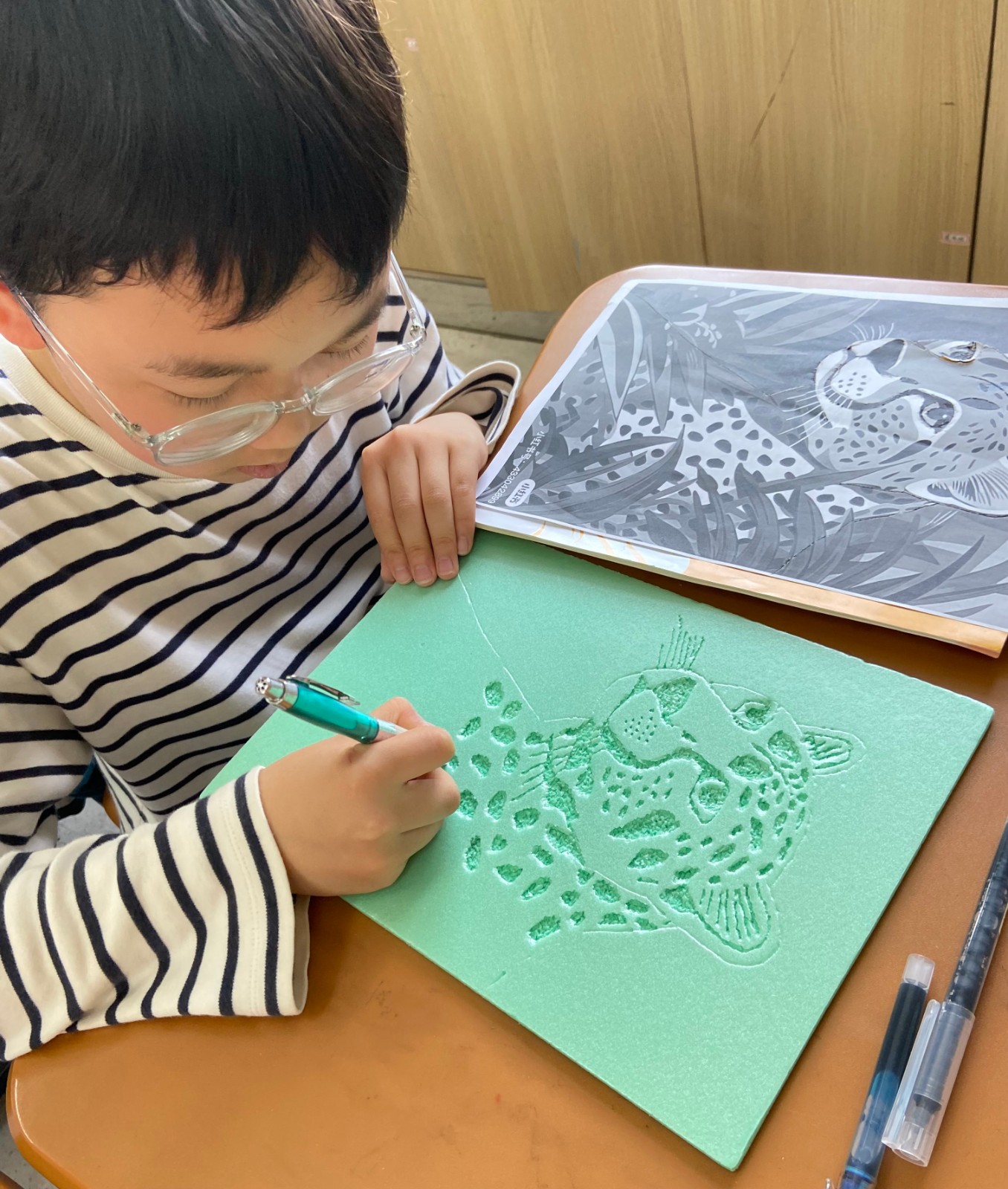 本学期的社团活动,我也总结前期的经验更加努力的为孩子们创设更好的课程。本学期我们开设了版画等一系列课程,从读绘本、画绘本、版画制作,和孩子们一起探索、发现热带雨林的乐趣。儿童画社团让爱艺术的学生们尽情地释放自己的美术天赋和绘画才能,虽然有部分学生绘画的能力不是很强,但是在这一学期的社团活动中每一个学生都很积极努力,在绘画水平和审美能力上都有很大的提高。