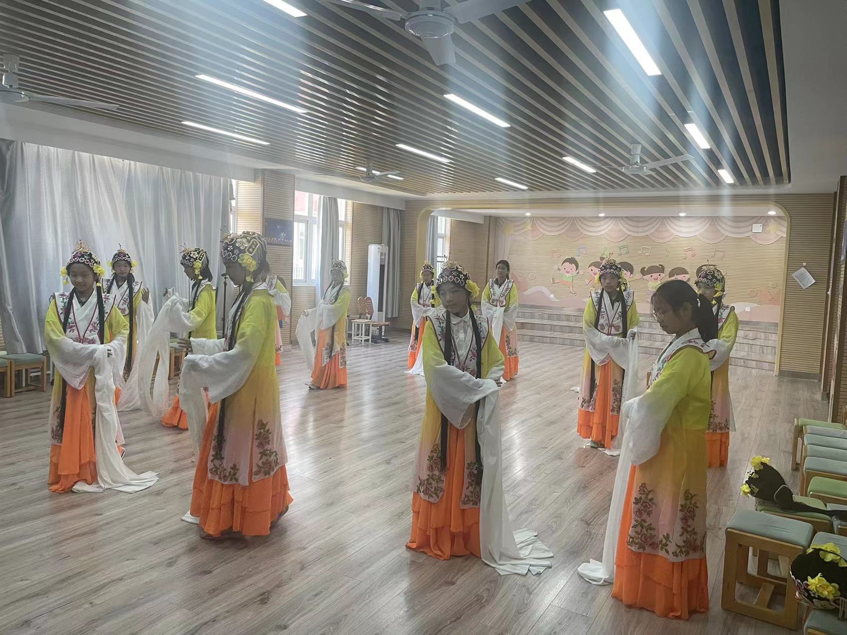 本学期的六一儿童节,戏曲社团的孩子们积极参加排练,表情,身段的细致练习,最后的表演赢得大家的一致好评,大大增加了孩子们对中国传统戏曲文化的热爱之情,下学期我们再接再厉!孩子们,加油!你们是最棒的!