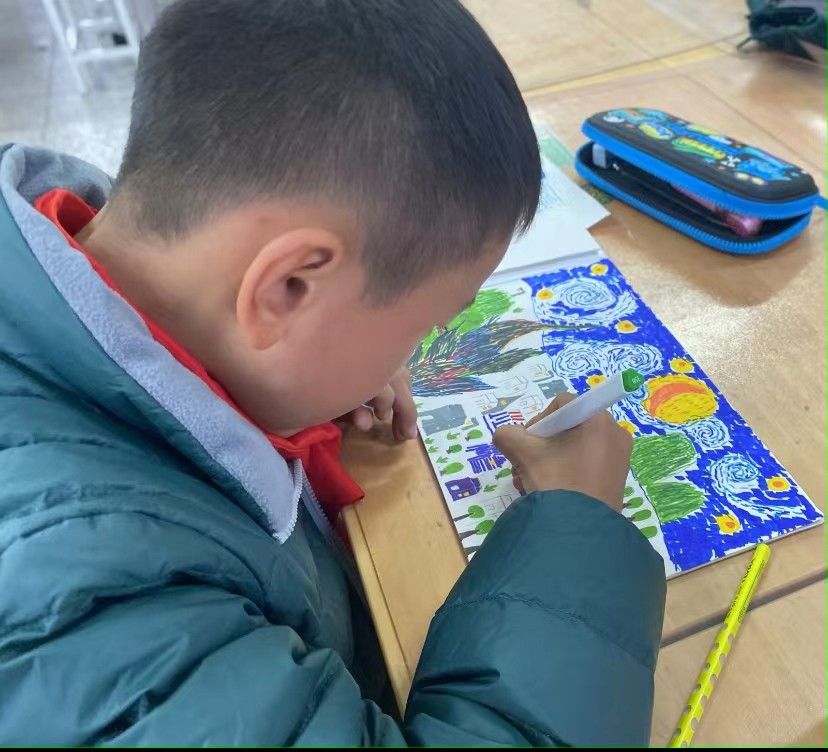 谈起为什么要开设“向大师学习”的美术社团时,这样不同寻常的课程安排就如同向平静湖面扔一颗小石子,一方面能把学生们从以往枯燥的课堂中吸引出来,激起他们的学习热情。另一方面,有的学生可能拿起画笔不知如何下笔,大师名作会激发他们的想象力,使他们更容易进入自由创作的状态。